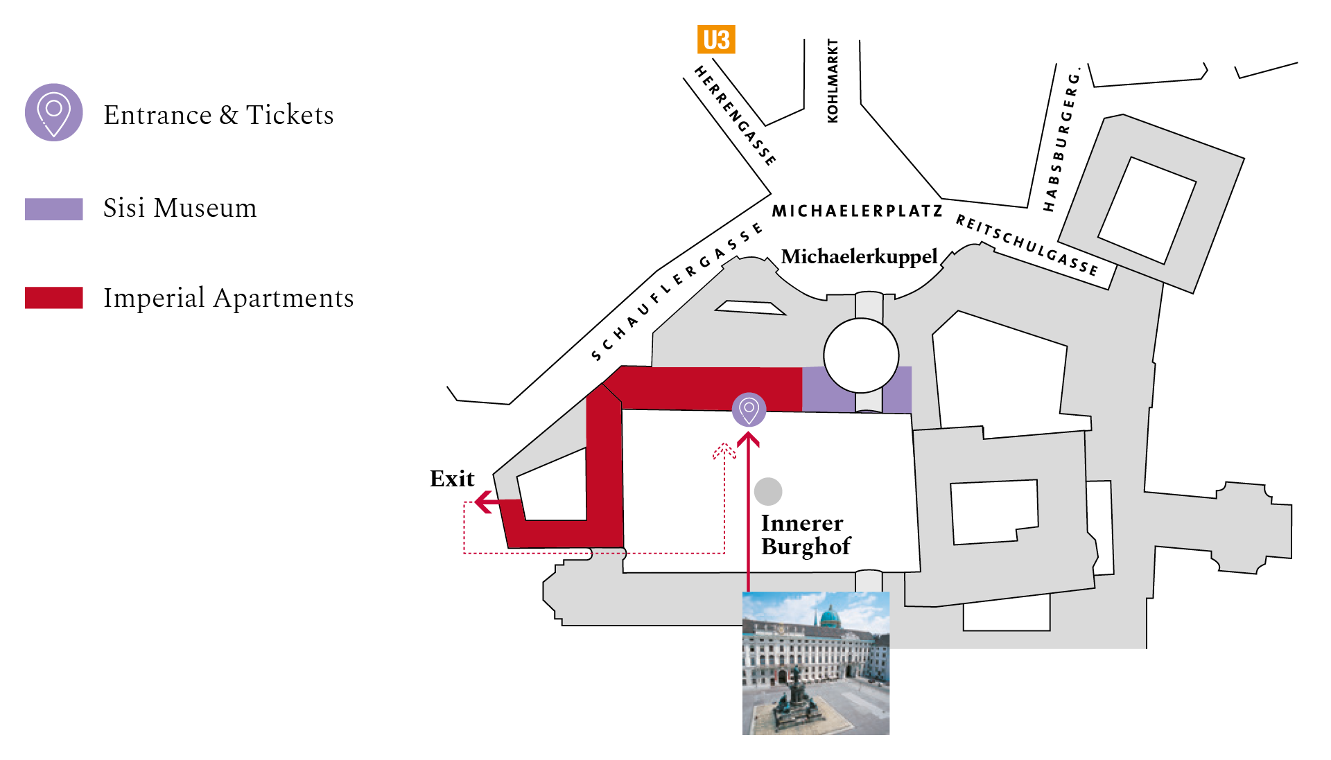 Underground: U3 (orange), alight at Herrengasse